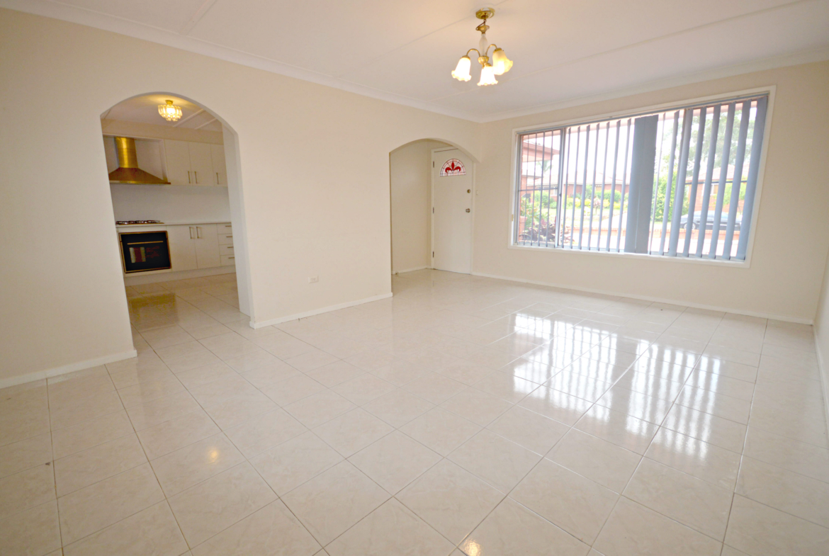 Tiled floors in living room and kitchen, timber floors in bedrooms with built-in wardrobe in main bedroom.